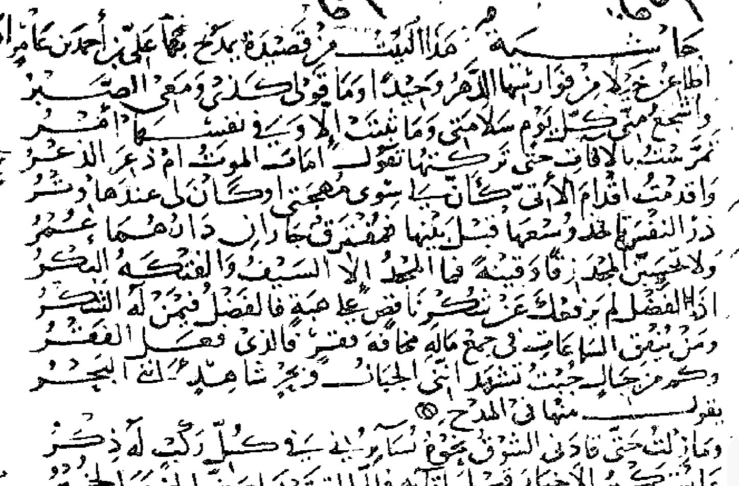 ولكن يظهر أن المغاني العربية كانت احتلت رؤوس الشعراء، فكان من ذلك أن أكثروا من ذكر نجد وسلع وإن لم يكن لهم بهذه المواطن هوى، ولم ينعموا فيها باصطباح ولا اغتباق. ولذلك نجد التكلف ظاهراً في حديث البوصيري عن جيرانه بذي سلم، ونحسبه اختارها للقافية كما اختار (أضم) لهذا الغرض.”