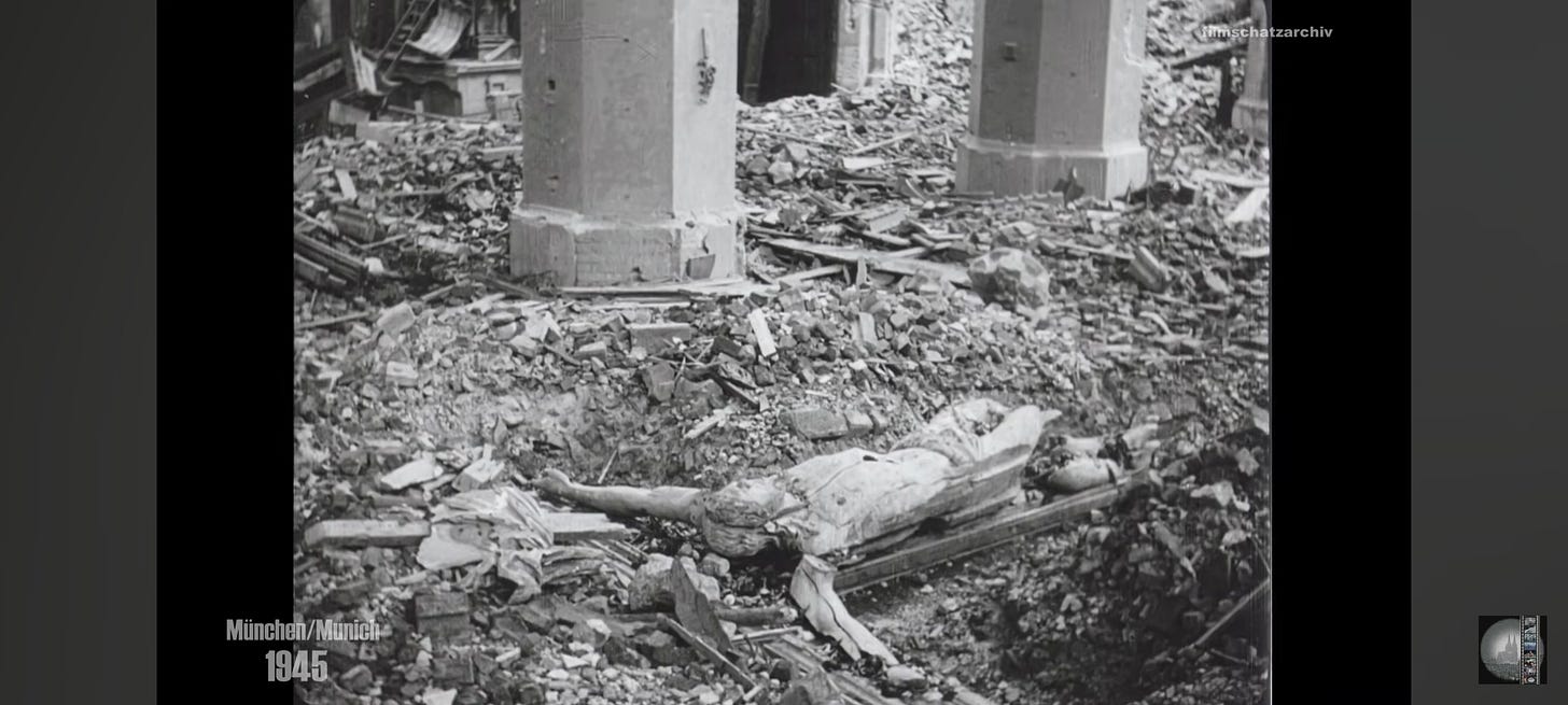 (مشهد من خرائب المدينة بعد الحرب والمسيح ممددا على الأرض مصلوبا بين الركام)