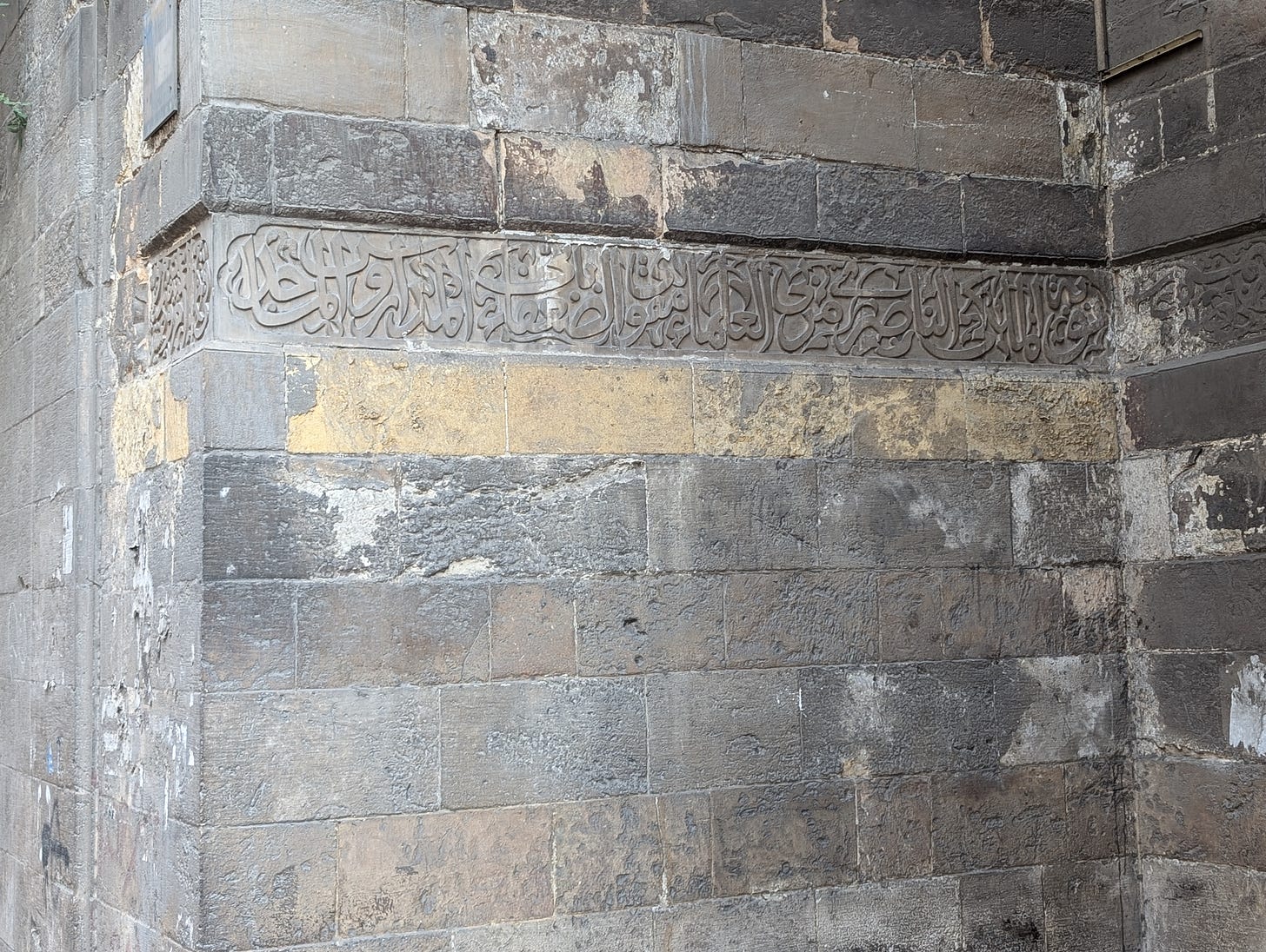 تلاحق عيني الآيات المختلفة وشعارات (رنوك) الأمراء وألقاب السلاطين الحائلة وما يكتنف ذلك كله من غموض. أسير بين البوابات الضخمة وألاحظ أحيانا تلك الألقاب المفرطة الطول والغرابة والتي حرص السلاطين والأمراء على إثباتها بكامل زينتها وأبهتها منقوشة على الحجر في محاولة لمراوغة الدهر العنيد ولكن فيما يبدو فإن الزمن وتصاريفه لا يعبأ بذلك كله كثيرا.