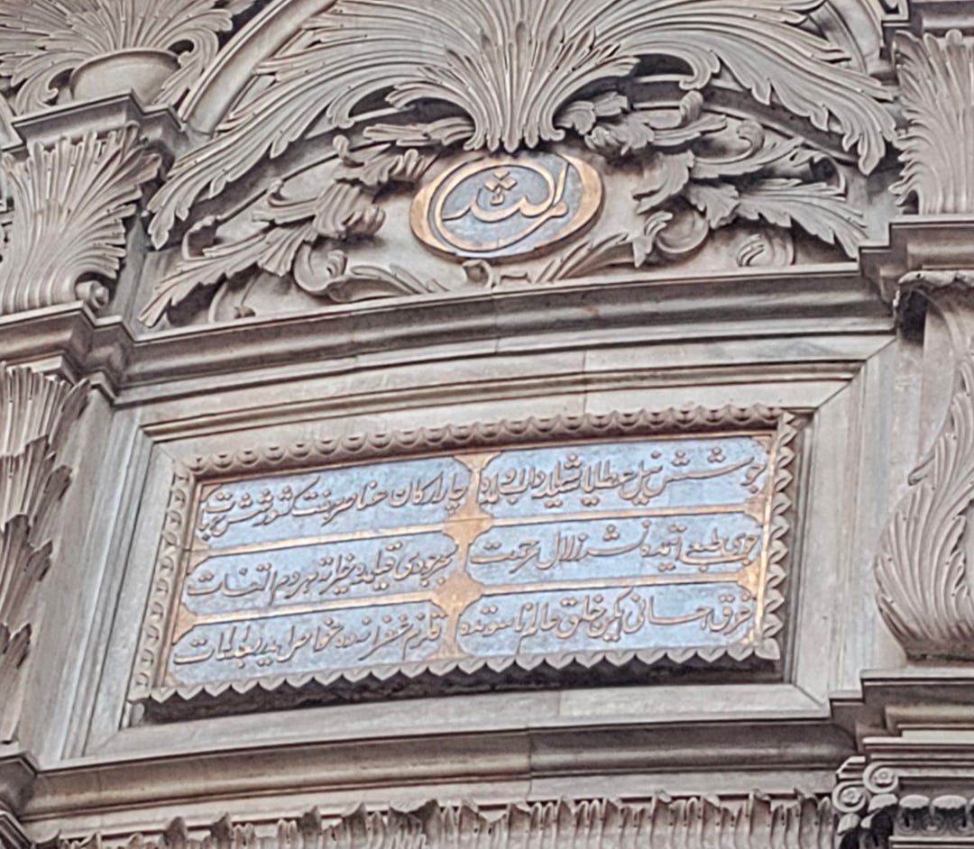 يُخيَّل إليَّ أنه يشملني بنظرة، وصوته الرخيم يقول: «بلبلي خون دلي خورد وكلي حاصل كرد.»"