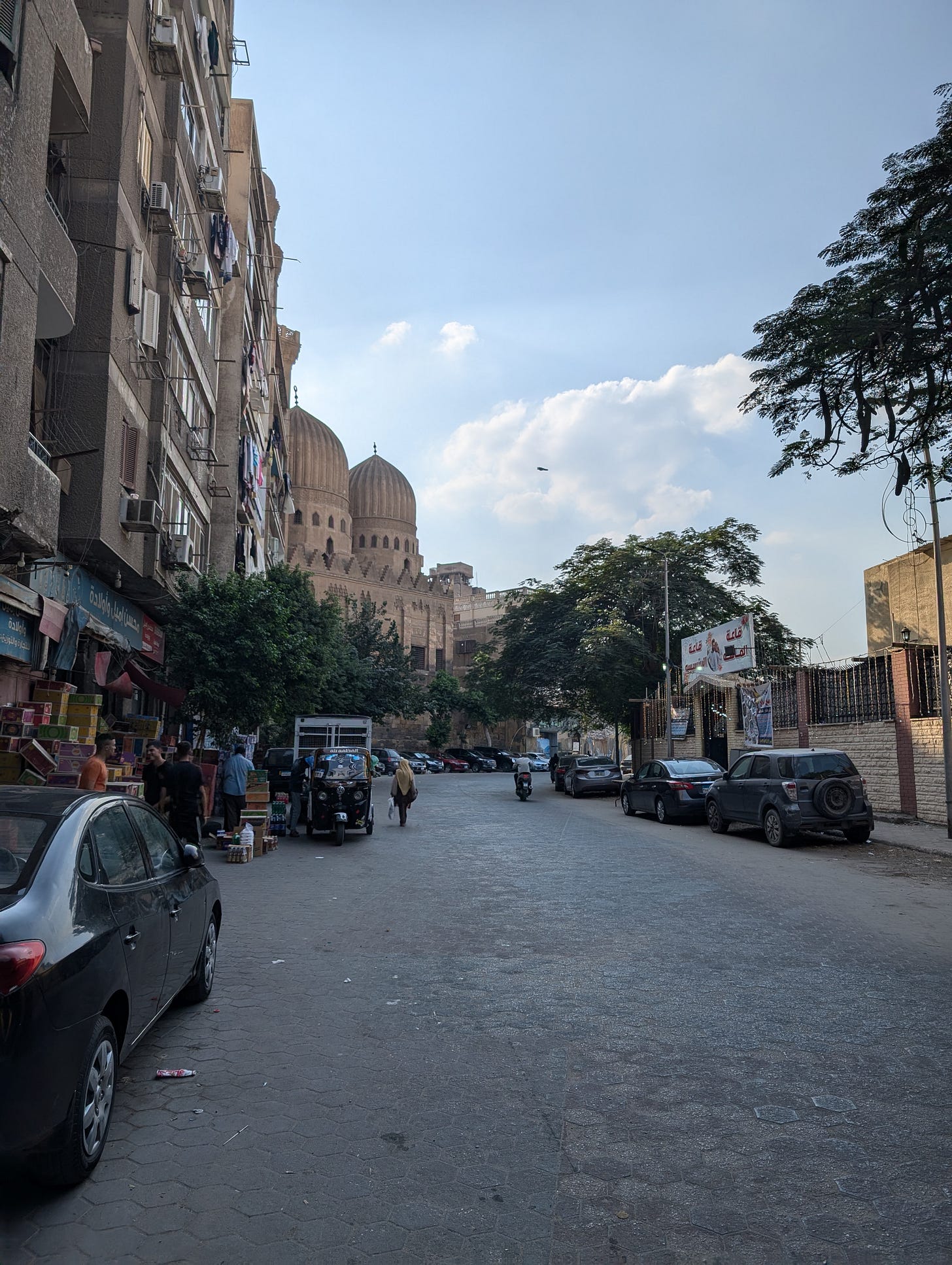 خطرت الفكرة ببالي حين مررت لأول مرة بخانقاه سنجر وسلار ذات القبتين شبه التوأمين، تقدم بنا التوكتوك نحوها مسرعا، وفجأة وعلى غير انتظار تجلى البناء المهيب في لمحات متتابعة سريعة وعابرة لكنها كذلك سرعان ما وقعت من نفسي موقعا مميزا، وستصبح اطلالتها البهية لاحقا مهوى فؤادي كلما مررت هناك أو وقعت إلي صورة قديمة لها.